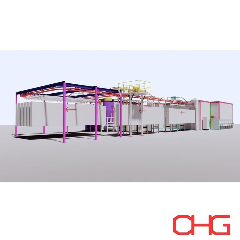 Wir sind stolz darauf, jede Pulverbeschichtungslinie nach den unterschiedlichen Produkten und Anforderungen unserer Kunden herzustellen.Unser Designteam nutzt modernste 3D-Modellierungssoftware, um umfassende 3D-Renderings zu erstellen., die eine klare und anschauliche Vorschau auf das Erscheinungsbild und die Funktionalität des fertigen Systems bietet.Diese visuelle Darstellung stellt sicher, dass alle Konstruktionselemente Ihren Erwartungen und Betriebsstandards entsprechen.
